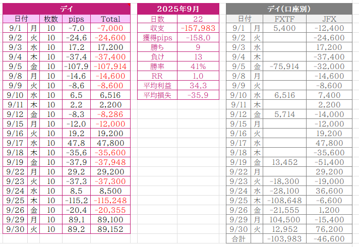 前日までの9月損益は