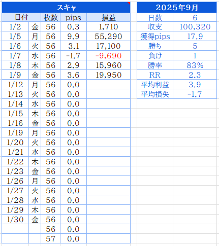 でした。今年はまだ始まったばかり、勝っても負けてもルール通り淡々とトレードするだけです。スキャと違ってルールは明確なので、いかにルールを守れるか。これに尽きます。